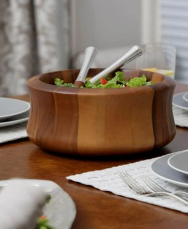 Nambe Yaro 3 Piece Wood Salad Bowl with Servers