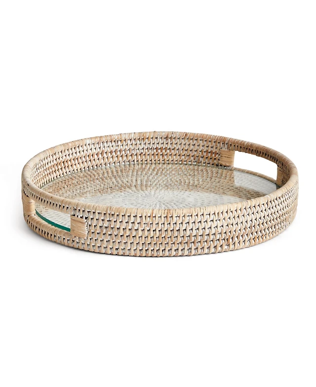 Napa Home & Garden 12.75" Burma Rattan Whitewash Round Natural Woven Wicker Serving Tray