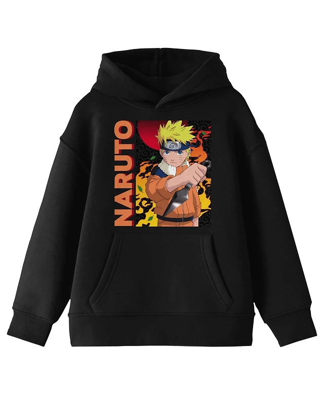 Naruto Boys Classic Character Pointing With Ombre Text Youth Black Graphic Hoodie-xl