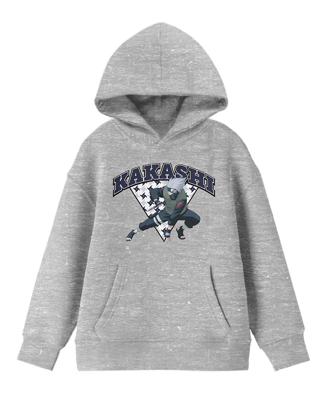 Naruto Classic Kakashi Fighting Stance Youth Heather Gray Graphic Hoodie-Small