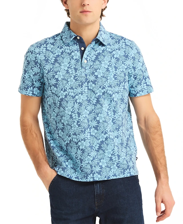 Nautica Men's Floral Print Pique Short Sleeve Polo Shirt