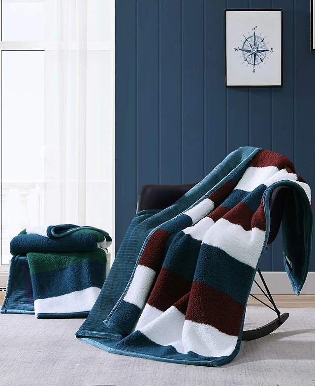 Nautica Wilton Sherpa Striped Throw, 60" X 50"