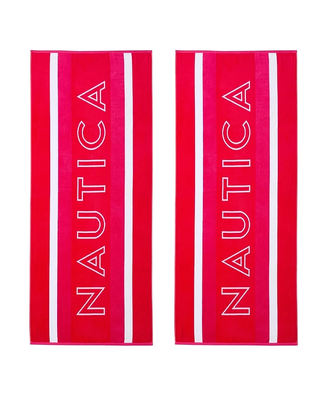 Nautica Logo Stripe Jacquard Beach Towel Set, 68" X 36"