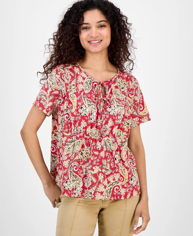 Nautica Jeans Women's Paisley-Print Tie-Neck Top