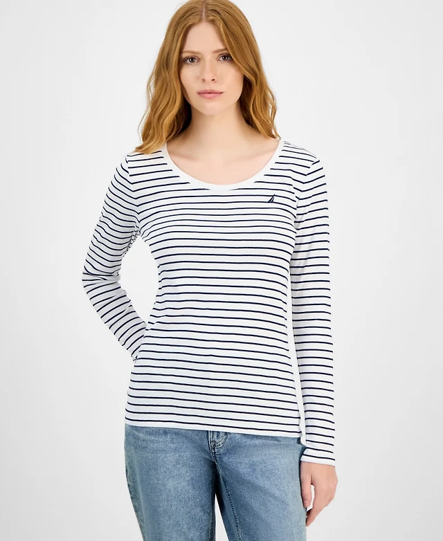 Nautica Jeans Women's Cotton Striped Scoop-Neck T-Shirt