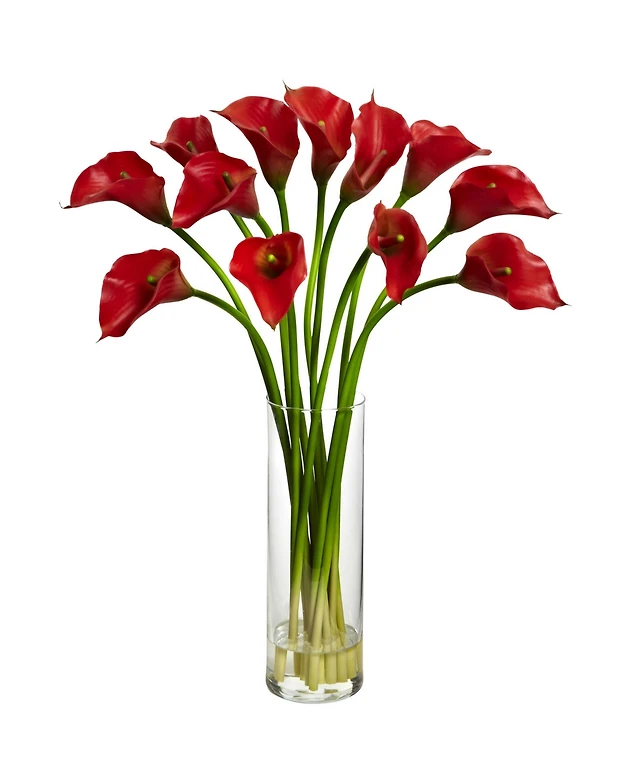 Nearly Natural 12" Calla Lily Artificial Arrangement Cylinder Glass Vase Ii