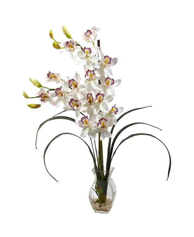 Nearly Natural Phalaenopsis w/Glass Vase Silk Flower Arrangement