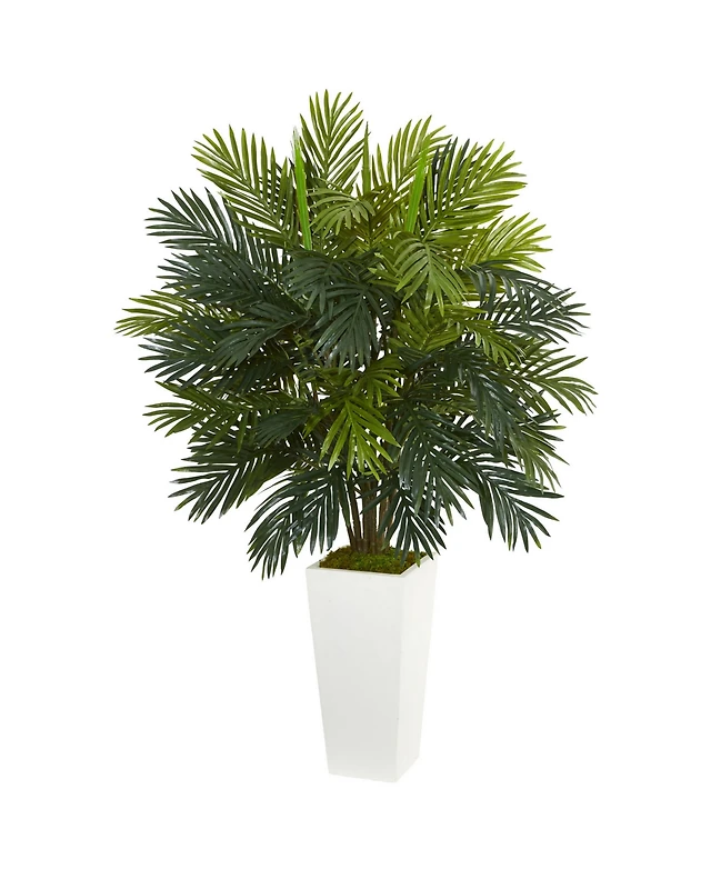 Nearly Natural 5.5' Triple Areca Palm Artificial Tree in White Planter
