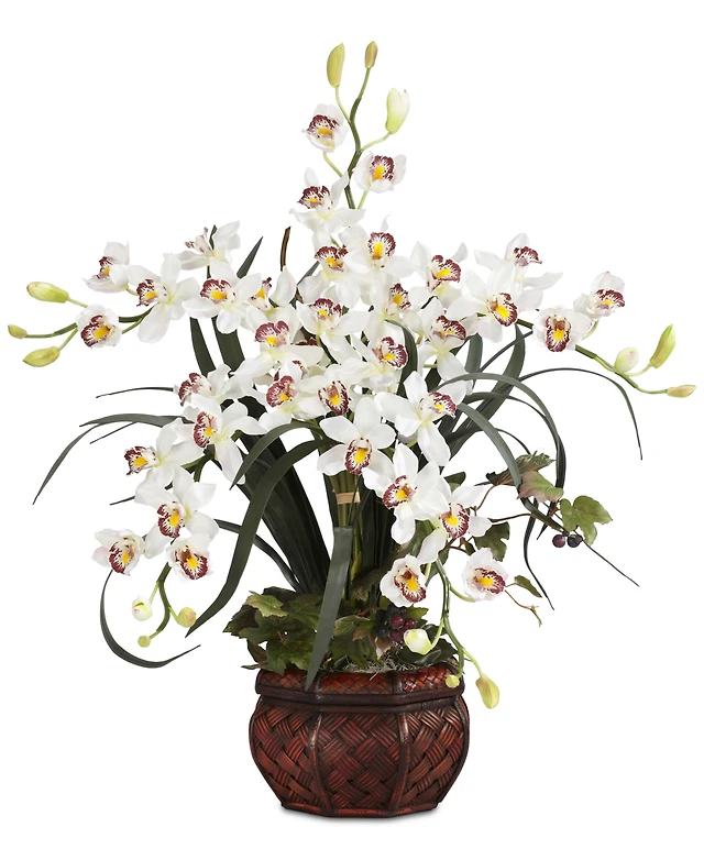 Nearly Natural White Cymbidium Artificial Arrangement with Decorative Vase