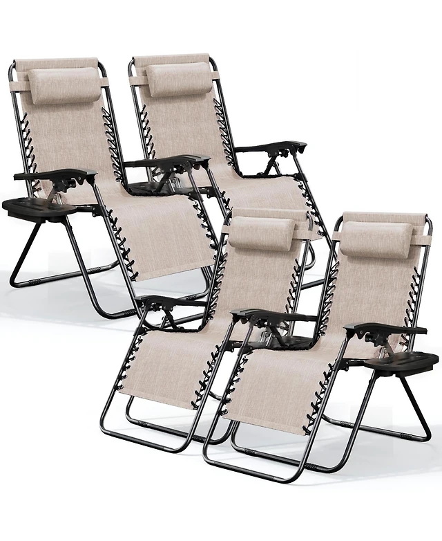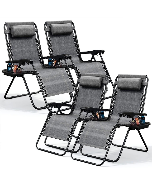 Outdoor Patio Zero Gravity Chairs Set of 4 - Reclining Lounge with Pillows & Cup Holders