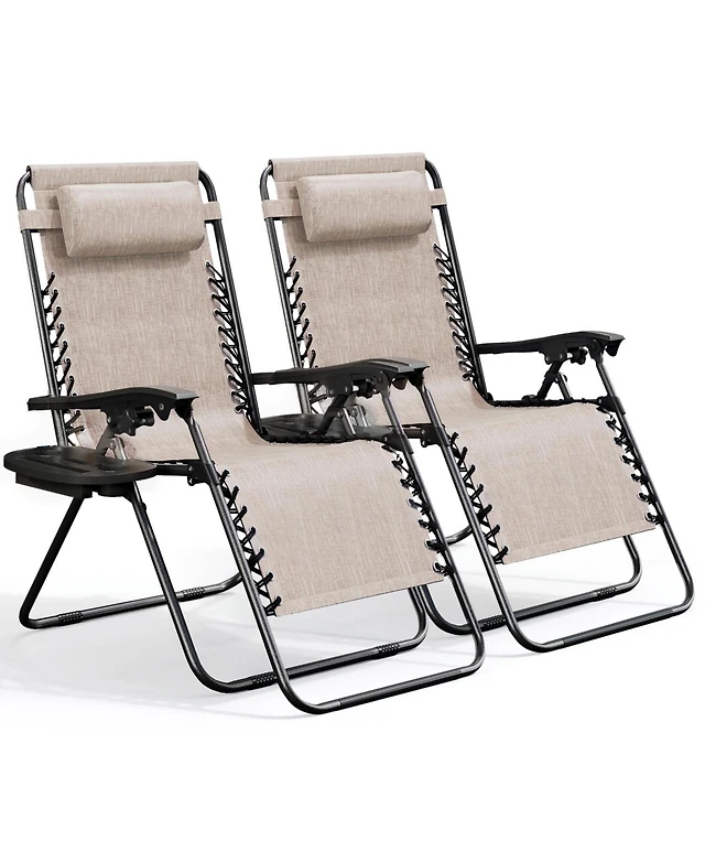 Outdoor Patio Zero Gravity Chair - Reclining Lounge with Pillow & Cup Holders