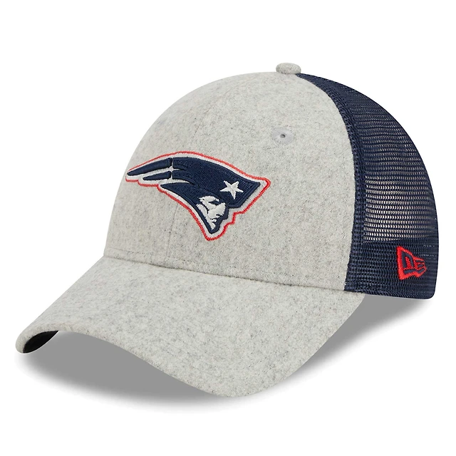 Men's New Era Heather Gray/Navy New England Patriots Pop Trucker 9FORTY Adjustable Hat
