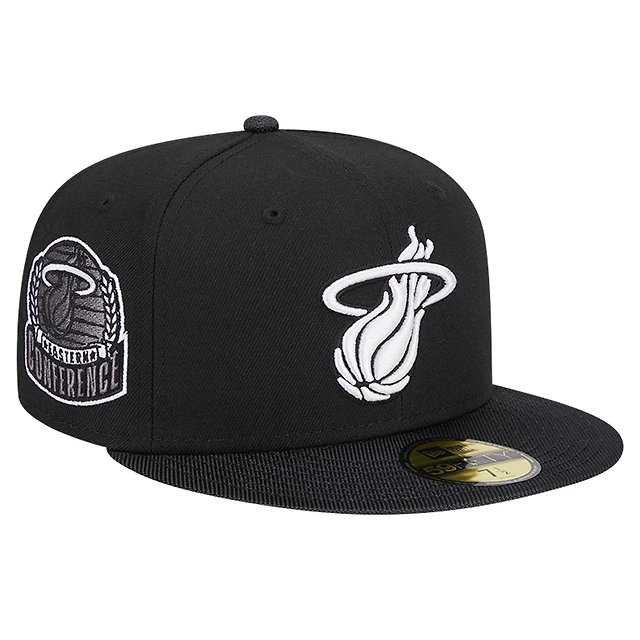 Men's New Era White/Black Miami Heat Throwback 2Tone 59FIFTY Fitted Hat