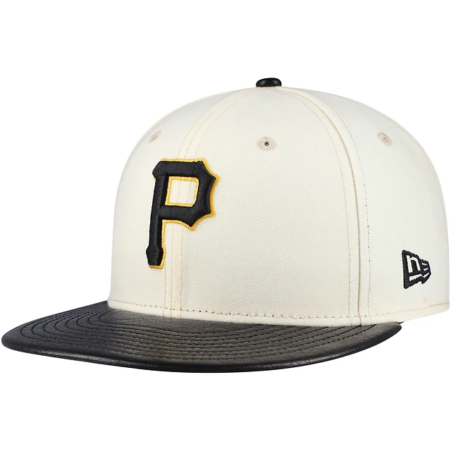 Men's New Era Cream Pittsburgh Pirates Game Night Leather Visor 59FIFTY Fitted Hat