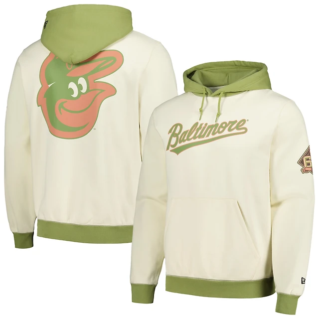 Men's New Era Cream/Green Baltimore Orioles Color Pop Pullover Hoodie