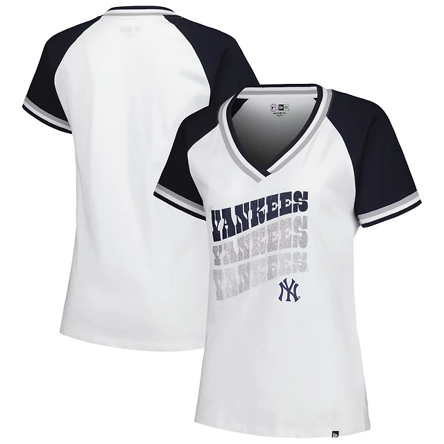 Women's New Era White New York Yankees Jersey Double Binding Raglan V-Neck T-Shirt