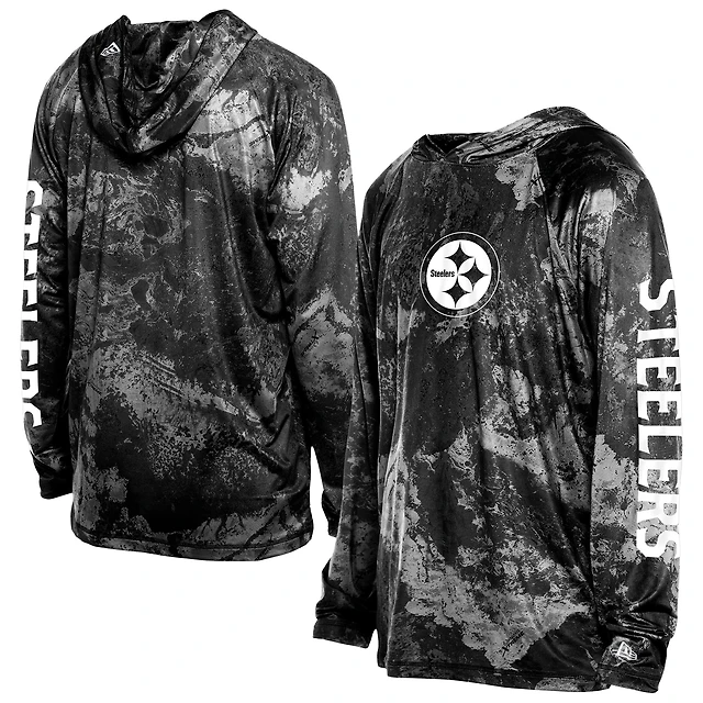Men's New Era Black Pittsburgh Steelers RealTree Xtreme Camo Raglan Long Sleeve Hooded Top