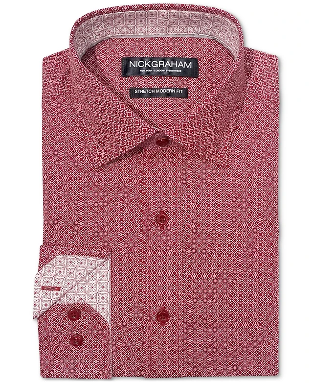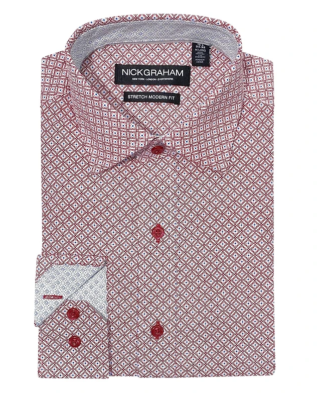 Nick Graham Men's Modern Fit Mosaic Tile Neat Dress Shirt