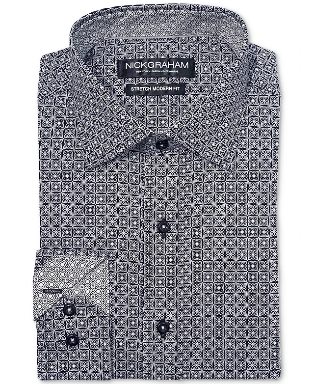 Nick Graham Men's Modern-Fit Medallion Tile Dress Shirt