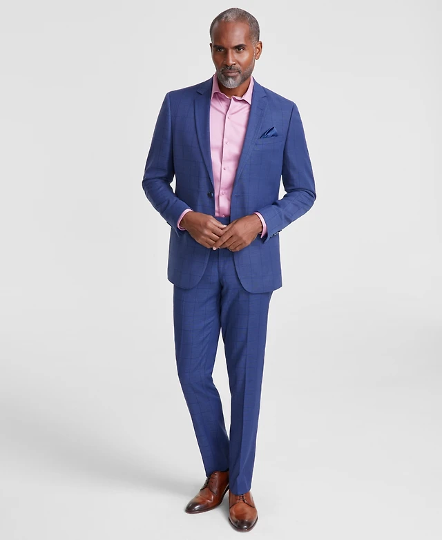 Nick Graham Men's Slim-Fit Windowpane Check Suit