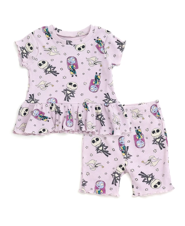 Nightmare Before Christmas Toddler Girls Ribbed Peplum T-Shirt and Shorts Outfit Set