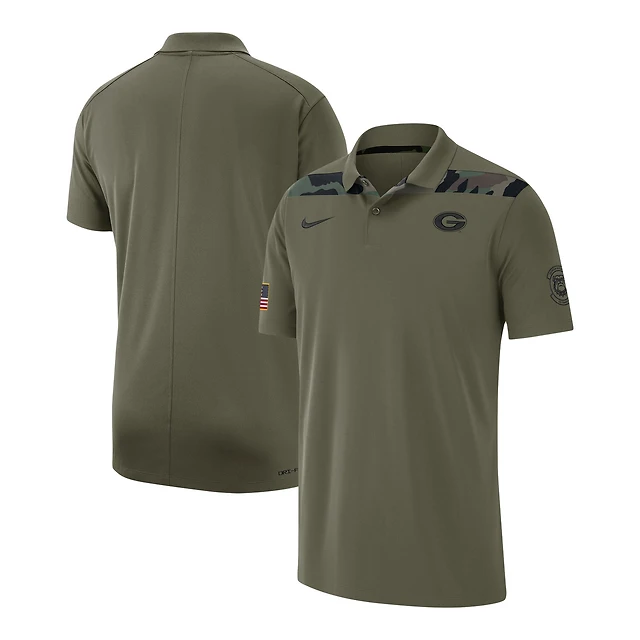 Men's Nike Olive Georgia Bulldogs 2023 Sideline Coaches Military Pack Performance Polo