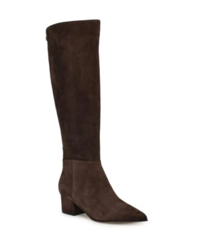Nine West Womens Morgin Tall Pointy Toe Block Heel Boots Regular Wide Calf