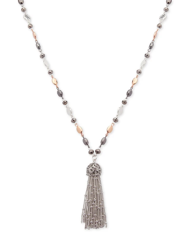 Nine West Tri-Tone Metallic Bead Long Tassel Pendant Necklace