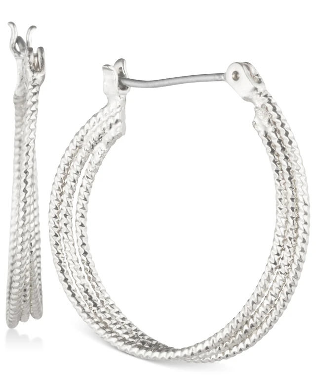 Nine West Multi-Row 1" Textured Hoop Earrings