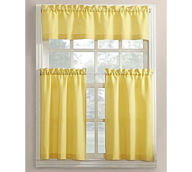 Martine Microfiber Semi-Sheer Rod Pocket Kitchen Curtain Valance Tiers Set