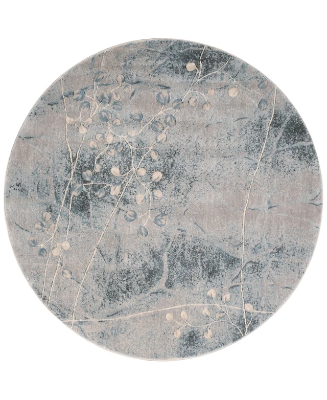 Closeout! Nourison Home Somerset Silver/Blue Blossom 5'6" Round Rug