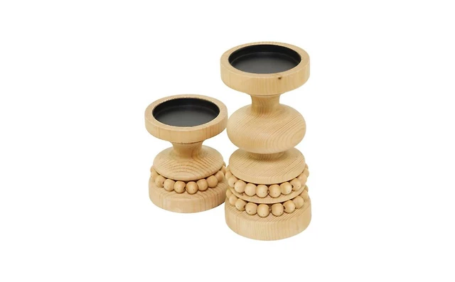 Wood Traditional 2 Piece Beaded Candle Holder Set
