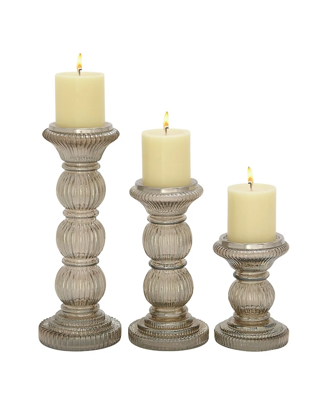 Wood Traditional 2 Piece Beaded Candle Holder Set