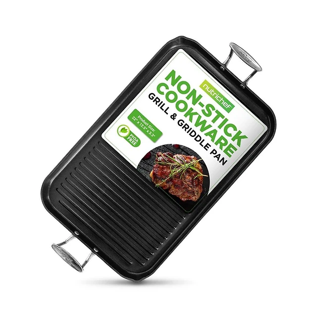 NutriChef 11 Hard-Anodized Nonstick Grill & Griddle - Dishwasher Safe Nonstick Grill Pan