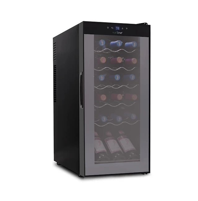 NutriChef 18-Bottle Wine Chilling Refrigerator, Digital Touch Control, Compressor Fan Cooling, Adjustable Temperature