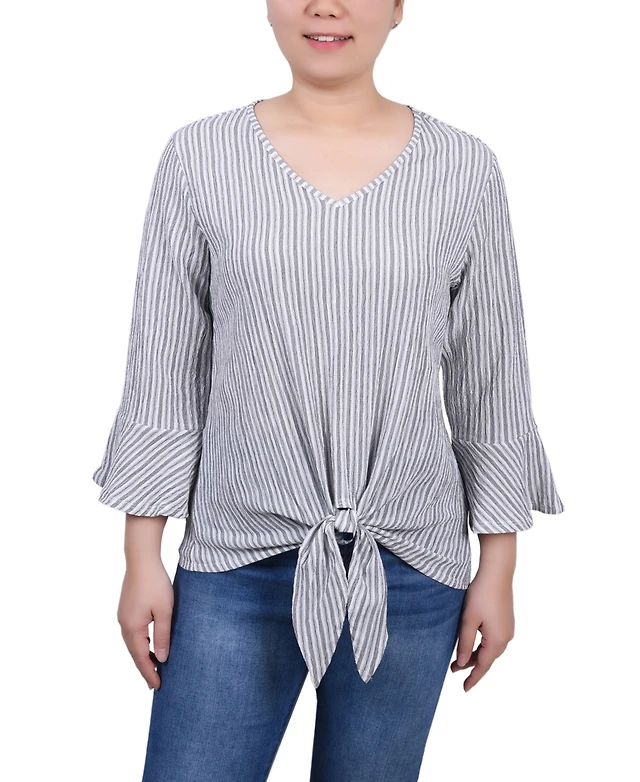 Ny Collection Petite Elbow Sleeve Tie-Front Top