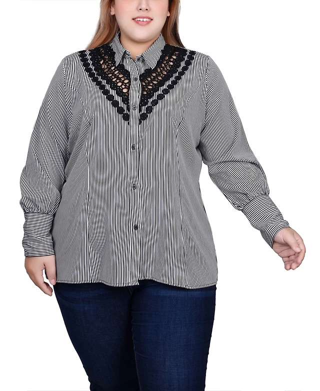 Ny Collection Plus Long Sleeve Crochet Trimmed Blouse