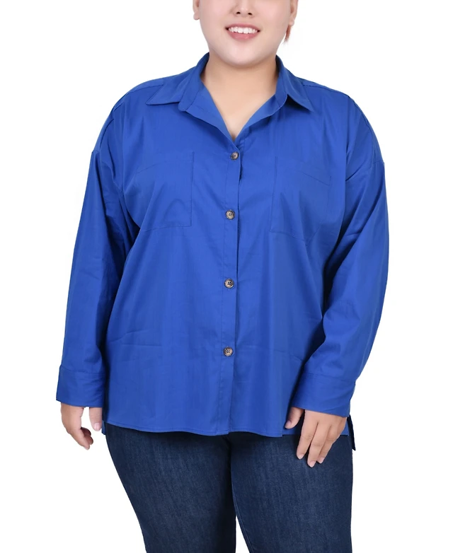 Ny Collection Plus Long Sleeve Blouse with Chest Pockets