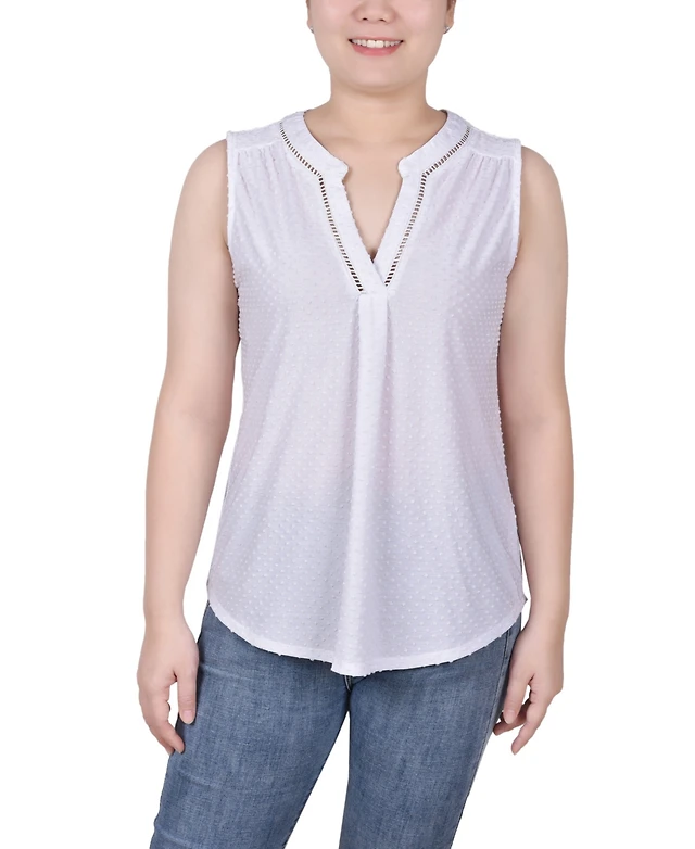 Ny Collection Petite Swiss Dot Sleeveless Top