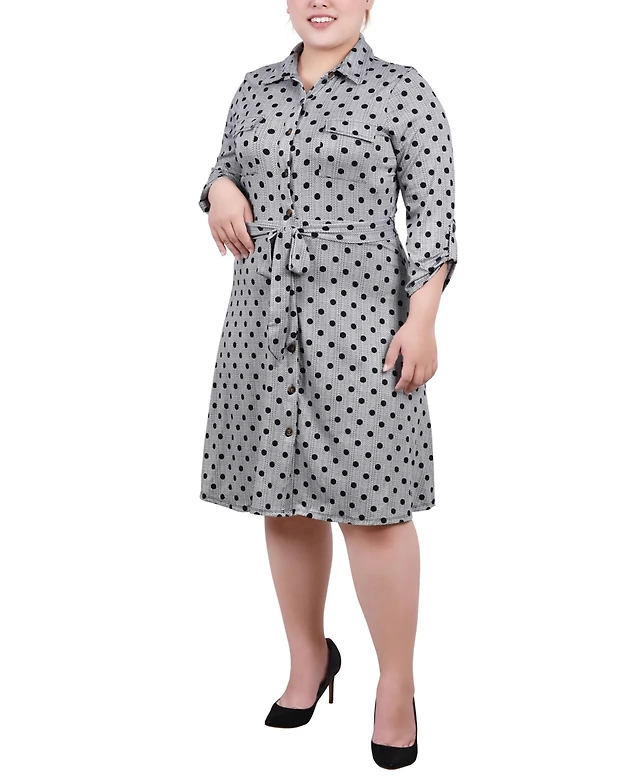 Ny Collection Plus 3/4 Roll Tab Sleeve Belted Shirtdress