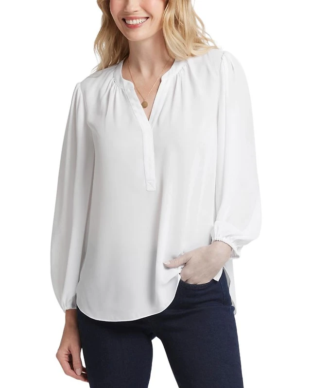 Three Quarter Sleeve Printed Pintucked Back Blouse