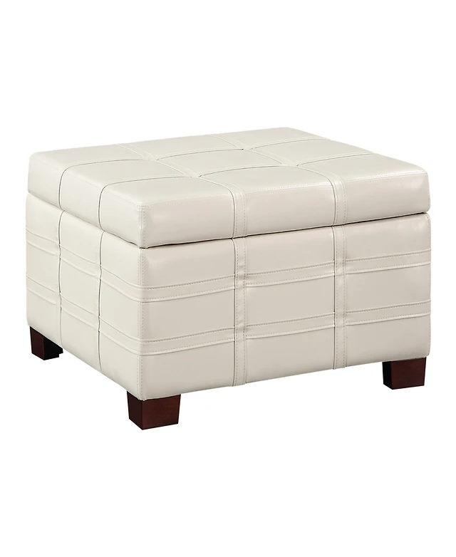 Office Star Detour Strap 29.75" Square Storage Ottoman in Cream Faux Leather Upholstery and Wood