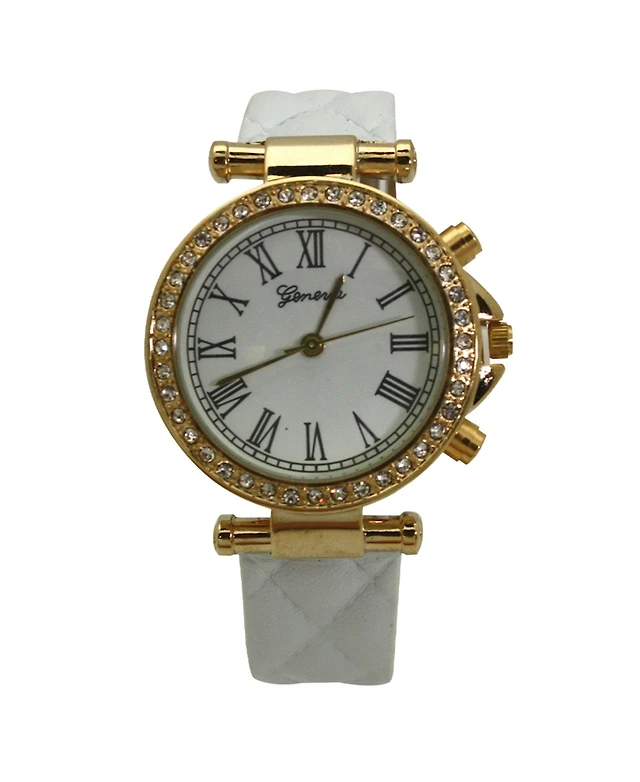 Olivia Pratt White Quilted and Gold Detail Leather Strap Watch