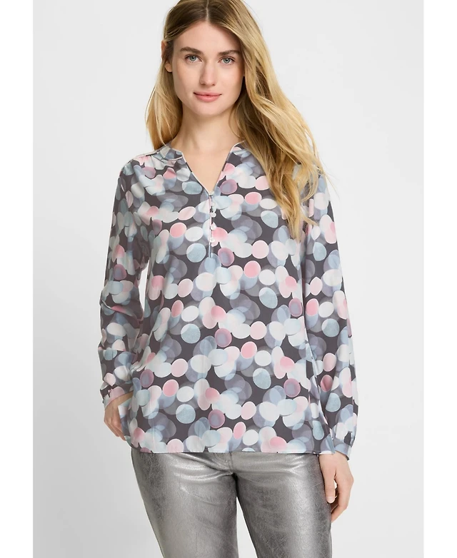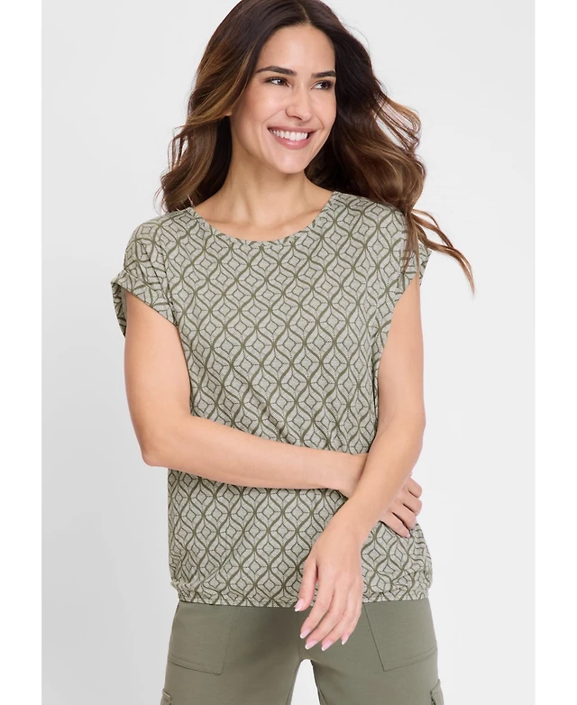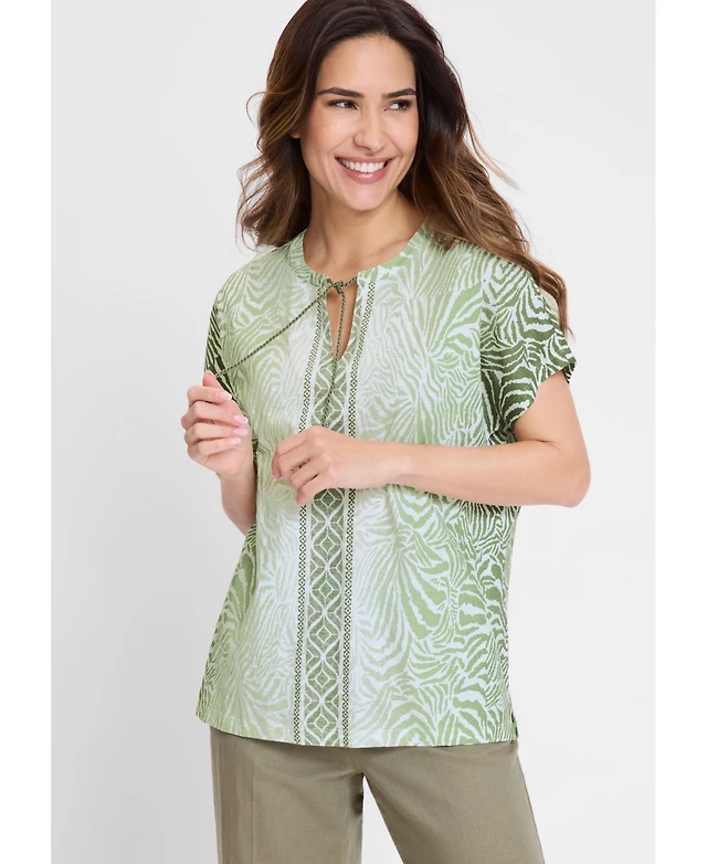 Olsen Women's Multi-Print Tie Neck T-Shirt