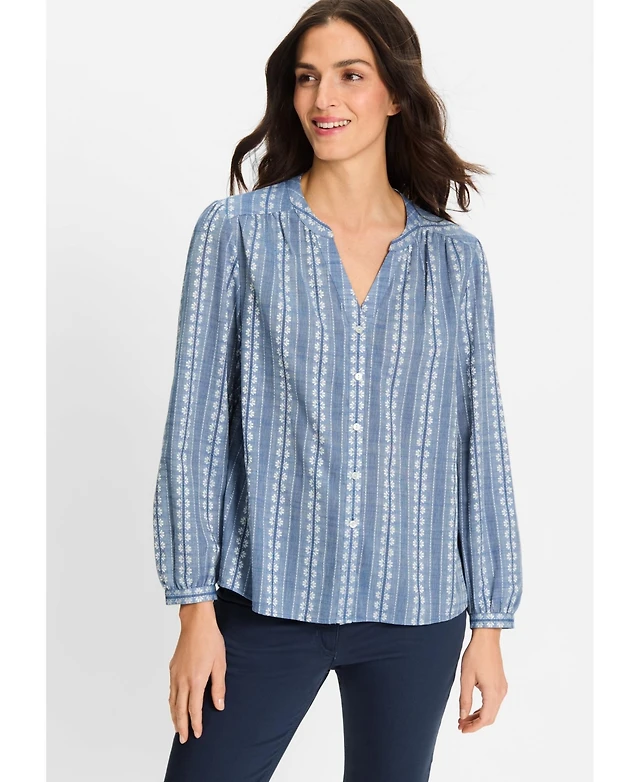 Olsen Women's Paisley Denim and Stripe T-Shirt