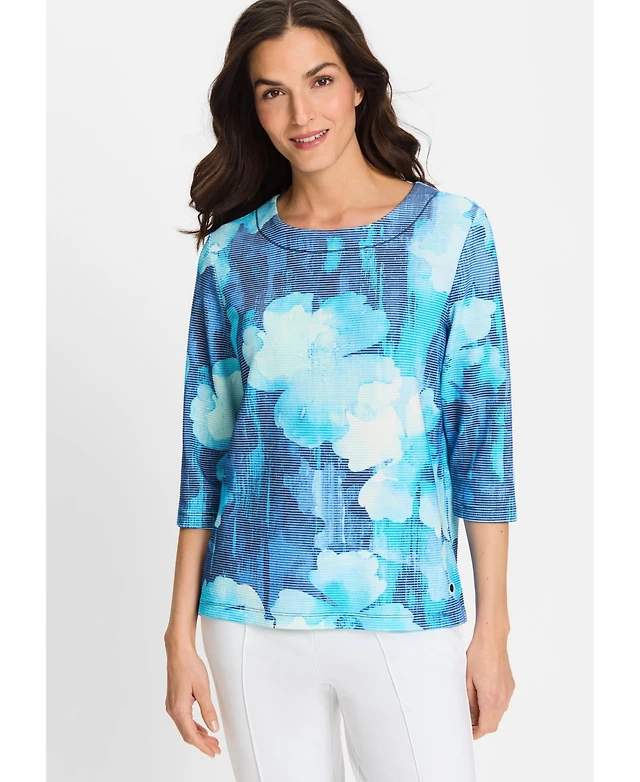 Olsen Women's Tropic Mix Print Tunic Blouse