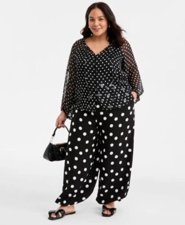 On 34th Trendy Plus Size Polka Dot Crinkle Chiffon Blouse Pull On Balloon Pants Macys Exclusive