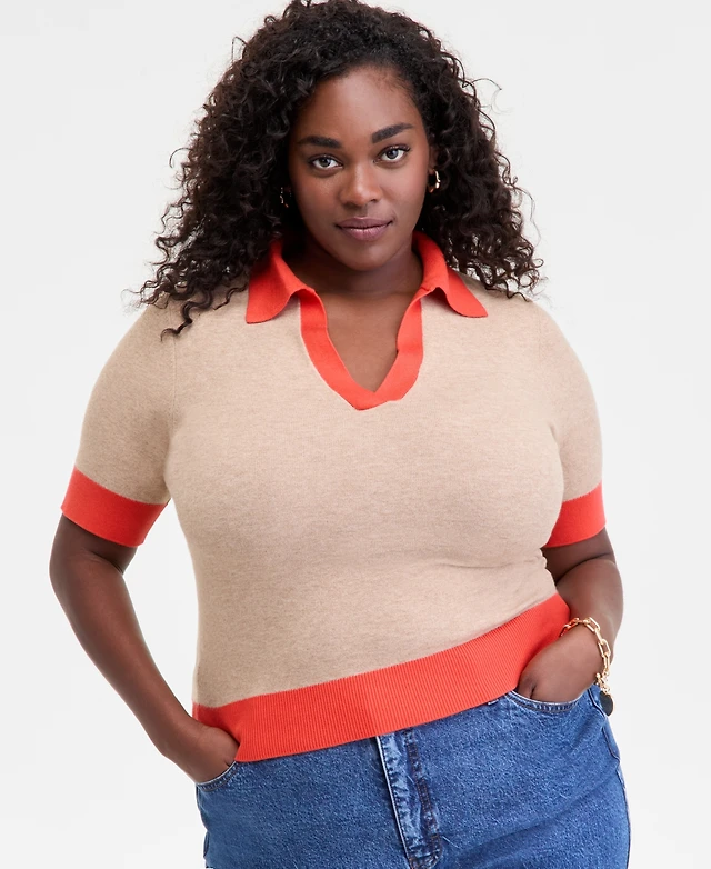 On 34th Trendy Plus Collared Contrast-Trim Sweater, Macy's Exclusive