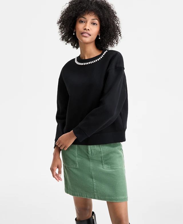 On 34th Women's Pearl Embellished Crewneck Sweatshirt, Macy's Exclusive