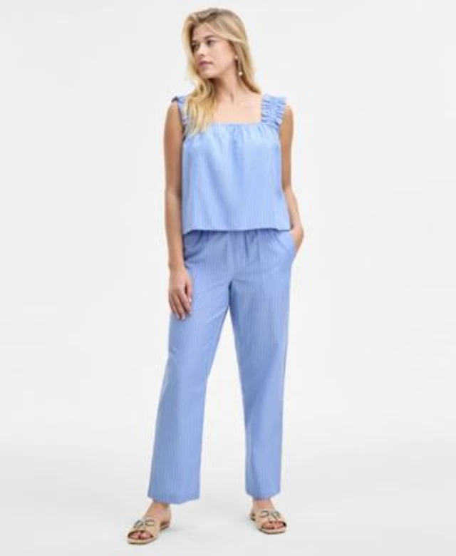 On 34th Womens Ruched Strap Striped Shirting Tank Easy Striped Pull On Pants Exclusively At Macys